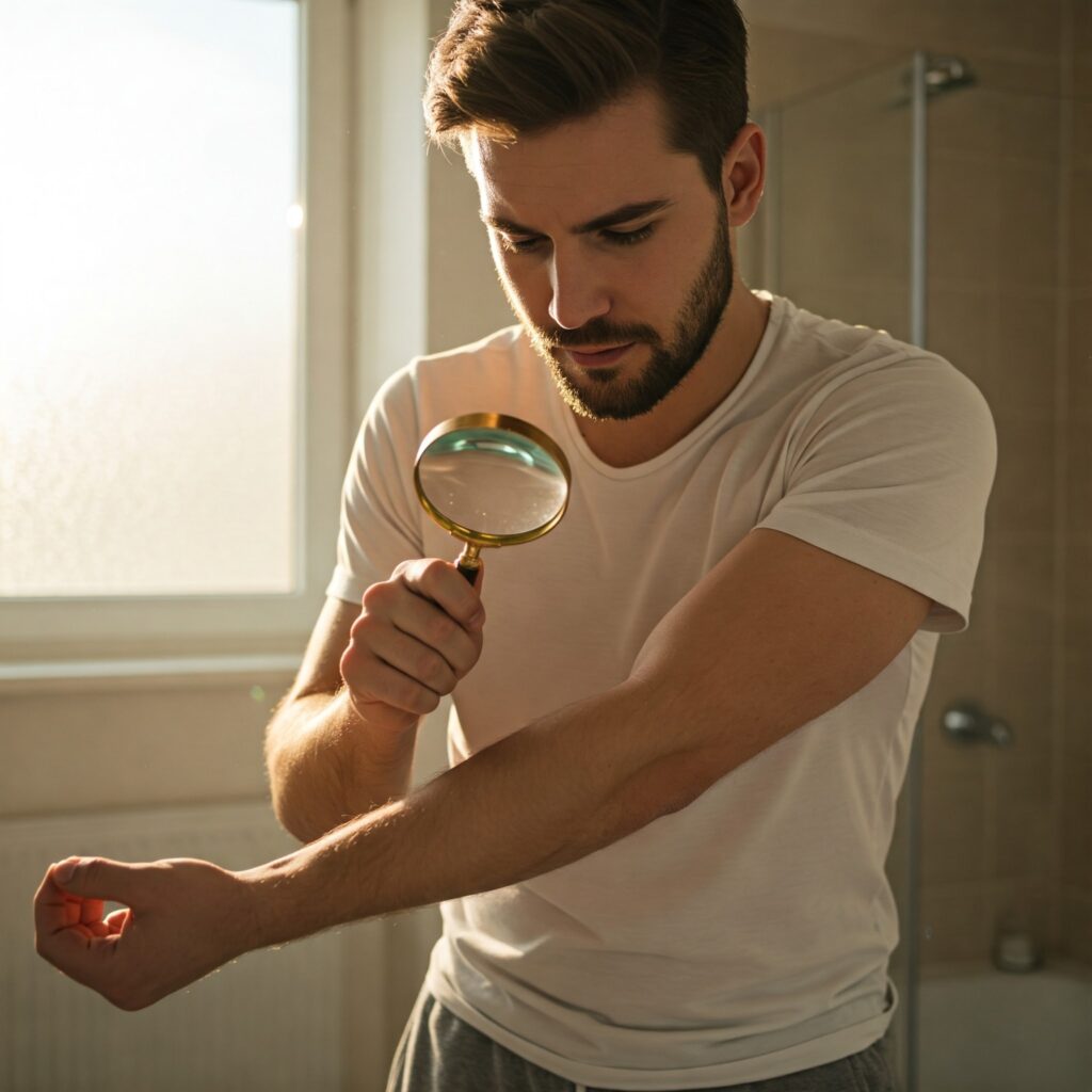 - Passare le mani sulla pelle per avvertire piccoli rigonfiamenti scuri, simili a nei.