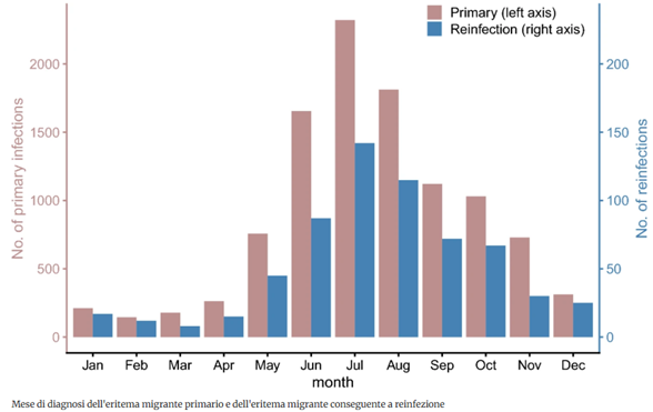 Le reinfezioni seguono lo stesso andamento stagionale delle infezioni primarie. Possono comparire tutto l’anno, ma risultano più frequenti nei periodi di maggiore attività delle zecche: dalla primavera all’autunno inoltrato.